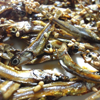田作り(たづくり)【別名:ごまめ(五万米)】という名前は昔、田んぼの肥料として生のまま乾燥させたイワシが使われていたことで豊作になったことから豊作祈願のために名づけられ、食べられるようになったそうです。